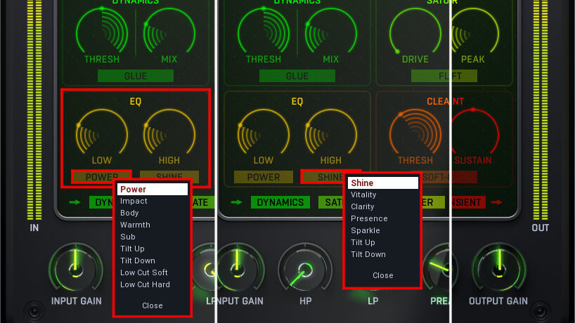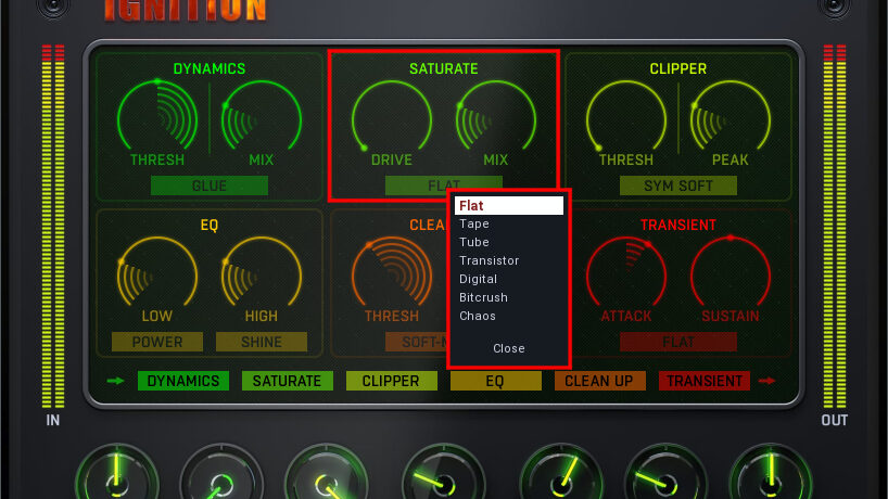 アグレッシブな演出に有効なサチュレーションや、細かいパラメータを排除したコンプ・EQなど、とにかく簡単に使える機能が多数搭載されています。