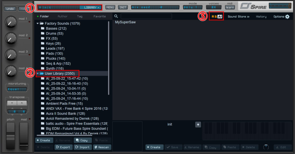 Spire購入者は、1日あたり2048音色まで生成が可能です。