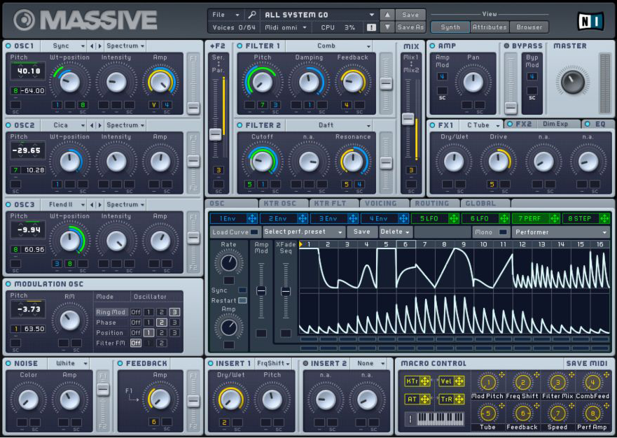 3つの主要オシレーターが搭載され、従来の波形操作だけでなく更に踏み込んだ自由なサウンドデザインが可能になった - ブラウザ/プリセット資産/互換性