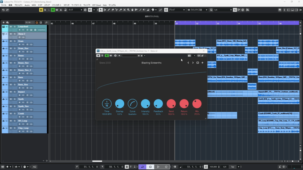 一度エフェクトを適用した状態でオーディオに書き出し、原音とそのオーディオデータを組み合わせることで独創的なビートを作ることができます(上記の動画ではそうしています) - パラメーターを動かす