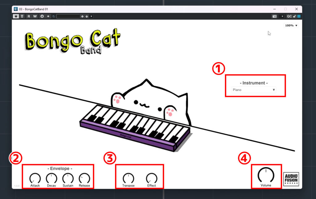 音階を変えたりリバーブをかけれます。 - ④Volume