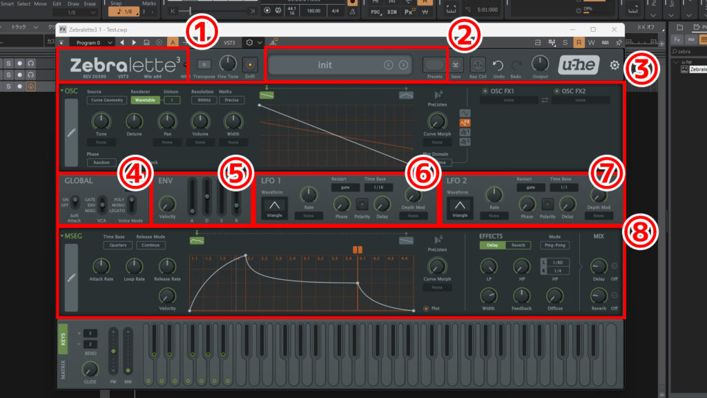 プリセットの選択、右クリックでイニシャライズ(初期状態)が可能 - ③OSC(オシレーター)